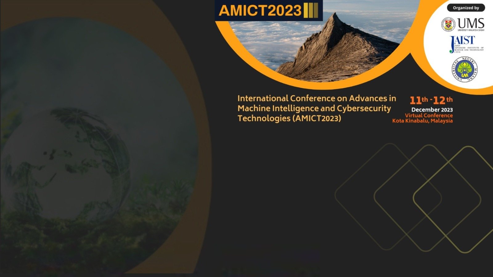The Faculty of Computing and Informatics, Universiti Malaysia Sabah is organizing the 2023 International Conference on Advances in Machine Intelligence, and Cybersecurity Technologies (AMICT2023), co-organized by the Japan Advanced Institute of Science and Technology (JAIST), Ishikawa, Japan, which will be held virtually at Kota Kinabalu, Sabah, Malaysia from 11 to 12 December 2023.